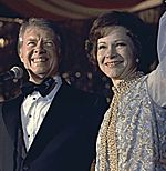 Stroll Down the Avenue (Jan. 20): Jimmy Carter takes the oath of office as the nation's 39th president and then astonishes the crowd by walking from the Capitol to the White House, at the other end of Pennsylvania Avenue. Searching for 'Roots' (Jan. 23-30): In one of the most remarkable events in TV history, "Roots" captivates the nation for eight straight nights on ABC. The 12-hour miniseries, based on author Alex Haley's moving search for his African ancestors, is the highest-rated series of all time. All eight telecasts rank among the top 13 highest-rated programs ever, and the final segment tops all shows. The A.C. Nielsen Co. estimates that about 130 million viewers -- about half the U.S. population -- watch at least a part of "Roots." A Slew of Wins (June 11): Seattle Slew, ridden by jockey Jean Cruguet, wins the 109th Belmont Stakes, following victories at the Kentucky Derby and the Preakness, to become the 10th horse to capture racing's Triple Crown.